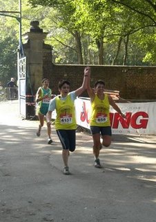Et je finis la course avec Nelly : nous arrivons ensemble, main dans la main !Merci à toi Nelly d'avoir couru les 3 derniers kilomètres avec moi... et finalement de m'avoir incité à participer à cette course !